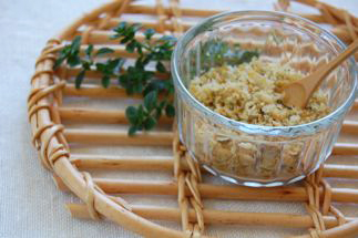 お好みで、パン粉をオリーブオイルできつね色になるまでじっくり炒め、